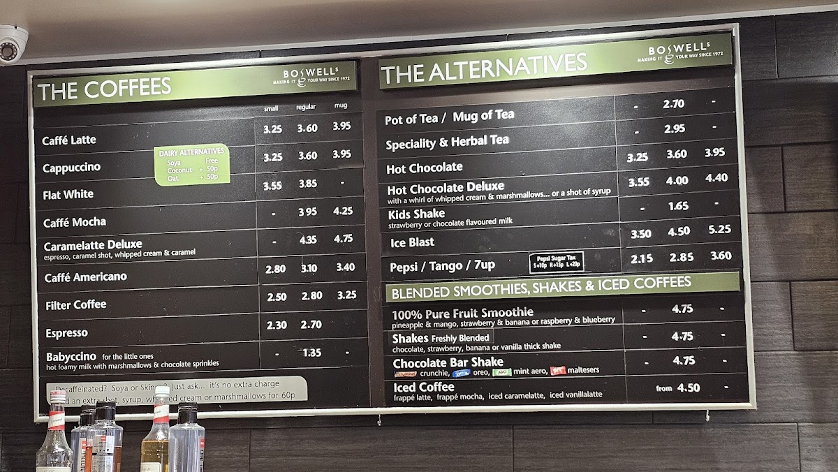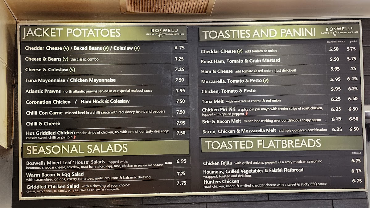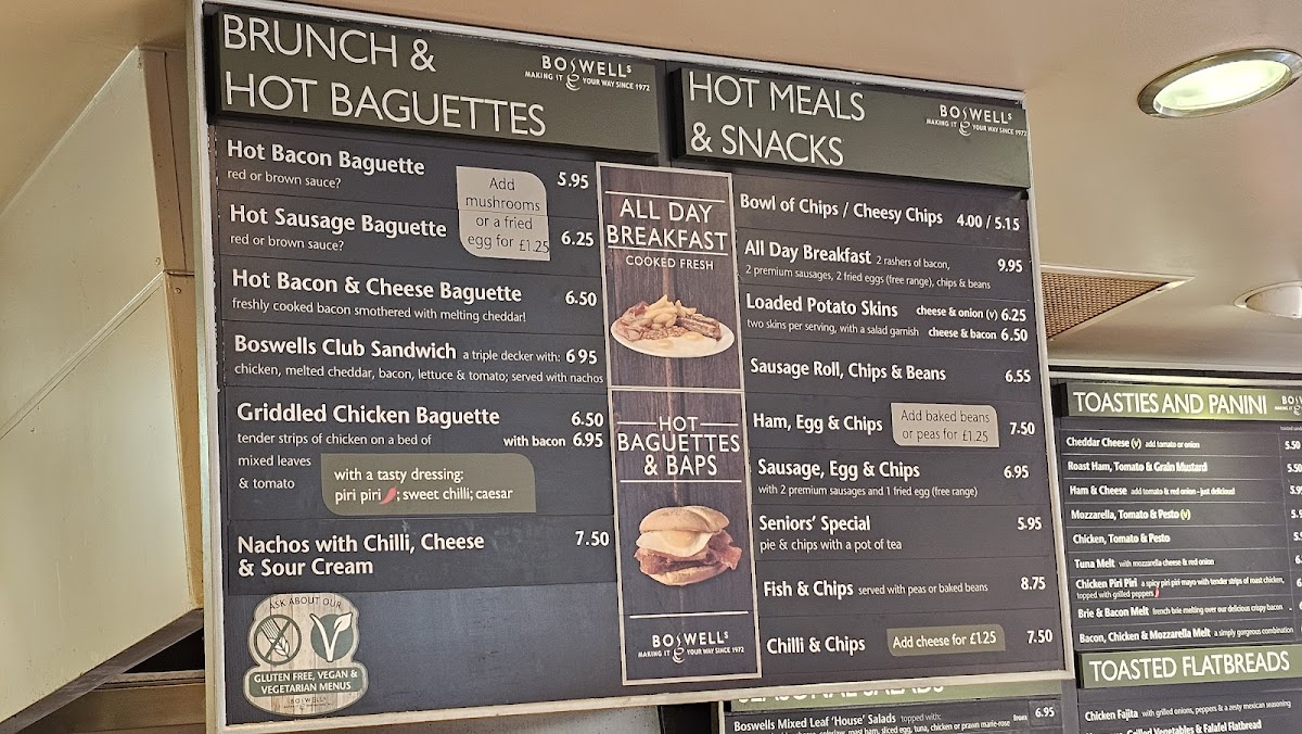Welcome to Boswells, a charming café nestled in Kingschase Centre, Bristol. Here, the menu is a delightful fusion of comfort and flavor, perfect for a cozy meal or a quick snack. Indulge in their savory offerings like the Bowl of Cheesy Chips or the hearty Steak Pie, both designed to tantalize your taste buds without breaking the bank. For something sweet, pair your meal with a Hot Chocolate Deluxe or one of their refreshing 100% Pure Fruit Smoothies. Customers rave about the warm atmosphere and friendly service, making it a favorite spot for shoppers and families alike. Whether you’re stopping by for a quick drink or a leisurely lunch, the inviting ambiance and consistently delicious food make Boswells a must-visit. With plans to return, it’s clear that this café has carved a niche in the hearts of its patrons. Experience the magic of Boswells—you won’t be disappointed!